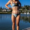Performance in flattering style, the Quintana Roo Swim Racerback Bikini top adds a touch of style to your training sessions with this QR-exclusive print design. The Y-back bikini top is cut from fabric designed to resist damage from chlorine and sunlight. If you’re between sizes, size up in this top.