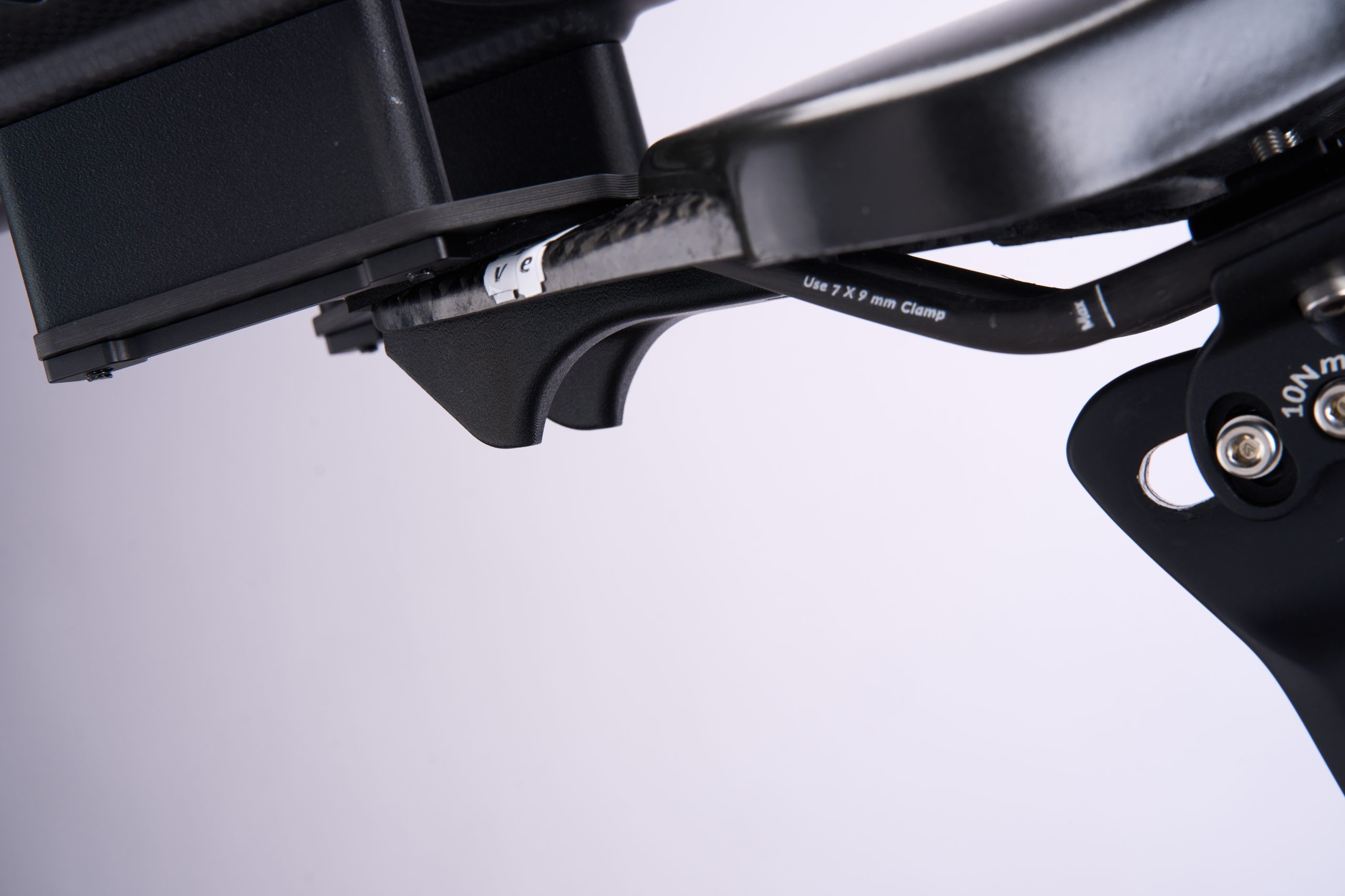 Simple, rigid solution. The CF plates simply rests solidly on the Wove saddle’s tail. (note: there is foam padding between the plate and the saddle tail to help protect your saddle.)
